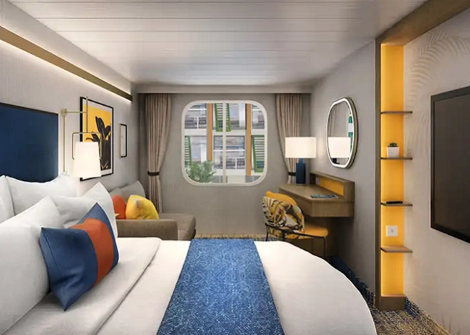 | T5 - Vnútorná kajuta s oknom / Surfside Family 17 m². Neotvárateľné okno s výhľadom na štvrť Surfside. 8. paluba vpredu. Max 4 osoby. | 3 669 € 1 223 € za osobu | ||