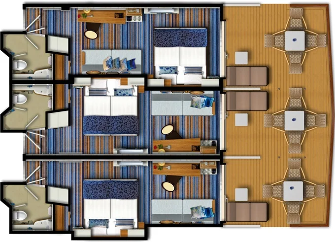 Každá loď ponúka niekoľko kategórií kajút – od vnútorných kajút, cez vonkajšie s výhľadom, až po luxusné kajuty s vlastným balkónom. Výber správnej kajuty môže výrazne ovplyvniť váš zážitok z plavby. Prezrite si našu ponuku a objavte, ktorá kajuta vám prinesie maximálne pohodlie a vytvorí z vašej cesty nezabudnuteľný zážitok.