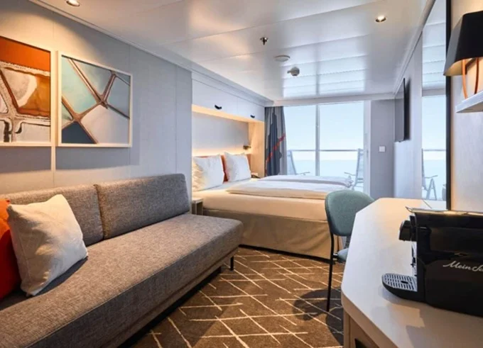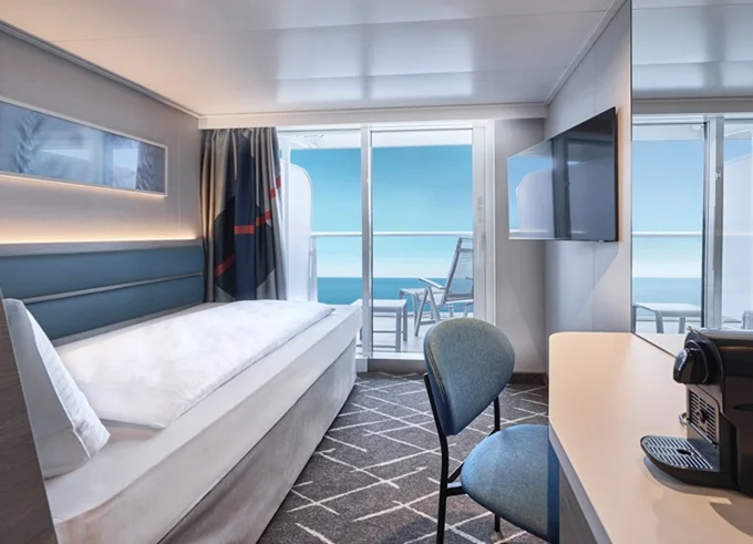 | SKAO - Schöne Aussicht Suite 39 m² + balkón 10-12 m² s ležadlami a hojdacou sieťou. 7-14. paluba. Max 4 osoby. Výhody Suite. | 5 496 € 1 374 € za osobu |