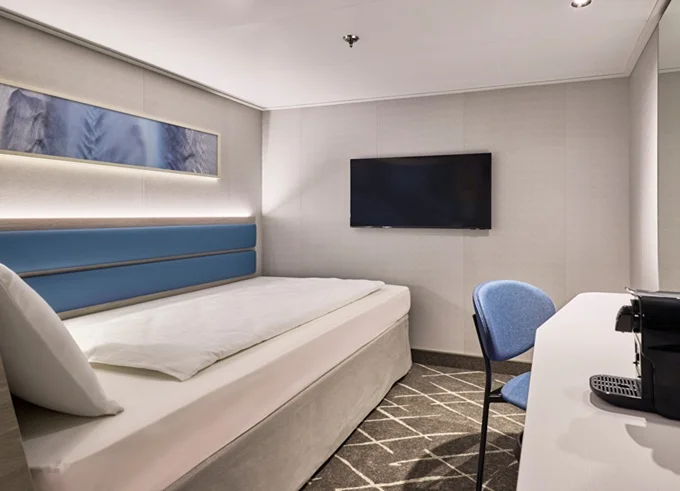| EKBO - Kajuta s balkónom Single 11 m² + balkón 5 m². 11. paluba. Max 1 osoba. | 2 669 € 2 669 € za osobu |